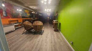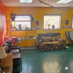This space is open and accessible to all neighbors seeking to commune with us. Guests can enjoy their time using exercise equipment, yoga mats, doing art, playing board games, listen to music, watch an insightful movie or just be present in a space that is created for us all, while learning about the work of A Just Harvest.