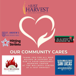 The deep gratitude from our community members to be able to come into a warm, clean facility – met with love, integrity and good warm food thanks to our local businesses J.B. Albertos and Redz Belizean Restaurant , snacks and sandwiches from St Andrews Greek Orthodox Church Hitting the Streets and covers from San Lucas United Church of Christ . This was all very short notice and these businesses and organizations pulled through with such compassion and wanting for their community what they want for themselves. I want to give thanks to our volunteers who came through to hold shift and help to keep our facilities clean and showing love to those who need it most. This is community, this is equality, this is wellness, this is A Just Harvest!