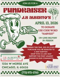 Join us for a fundraiser: J.B Alberto’s pizza – where 20% of your purchase fights against hunger within our community!