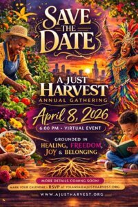 SAVE THE DATE: A Just Harvest Annual Gathering April 8, 2026 at 6pm Grounded In Healing, Freedom, Joy & Belonging