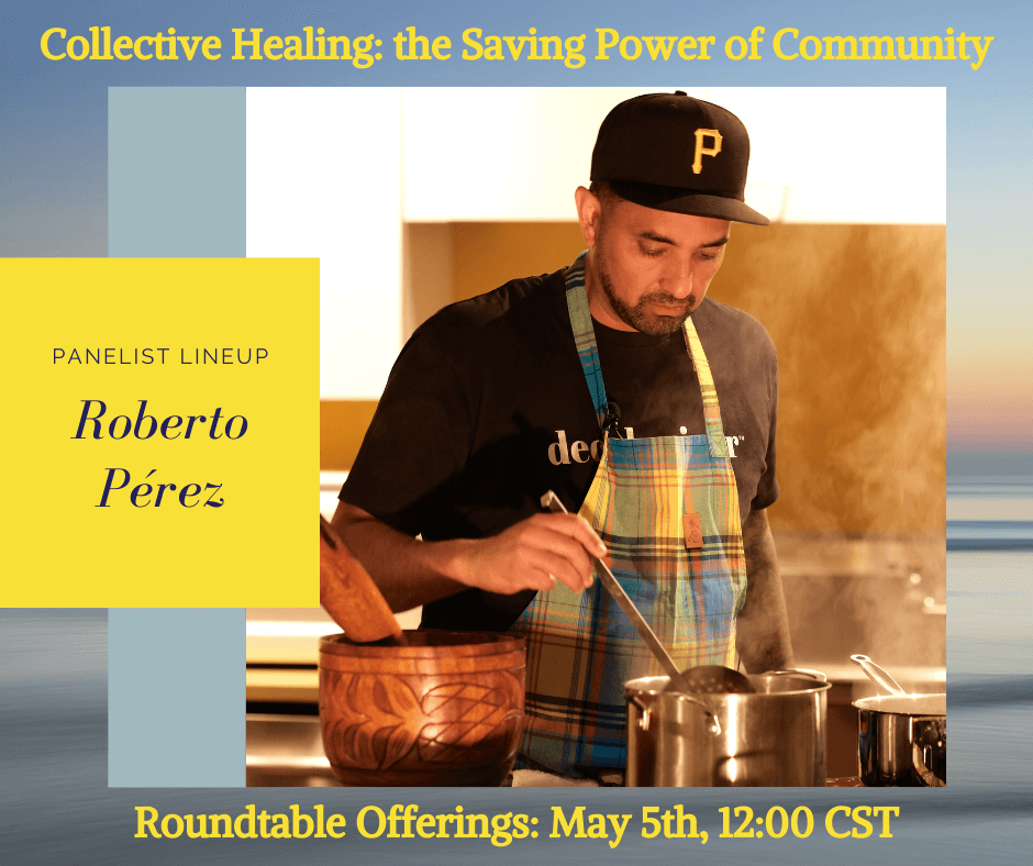 Roberto Pérez is a chef, musician, and researcher of Afro-Caribbean traditions. He is one of the founding members of acclaimed Afro-Puerto Rican music group, Bomba con Buya, and the co-founder of educational culinary initiative, Urban Pilón.